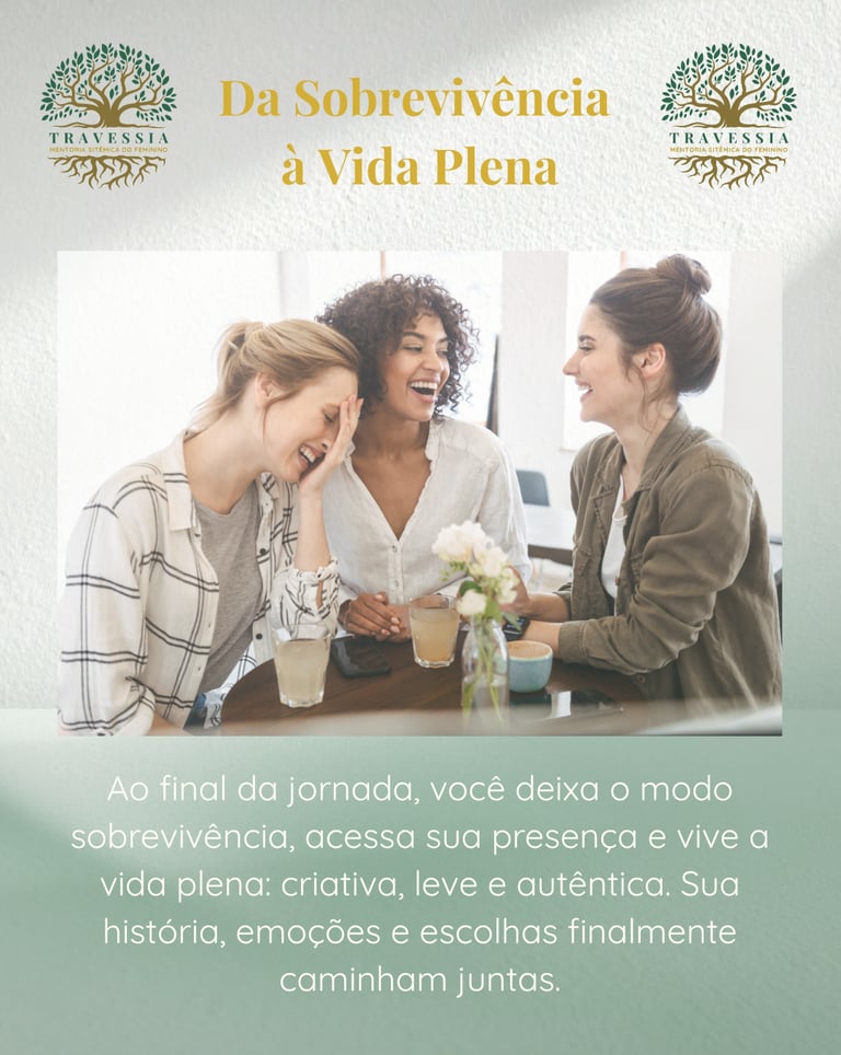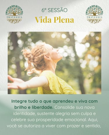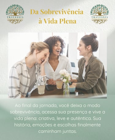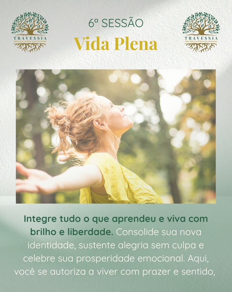 O objetivo é reconstruir uma nova narrativa pessoal com leveza, autenticidade e propósito. Ao final, a mulher acessa sua potência criativa e emocional, vivendo com liberdade e plenitude.
