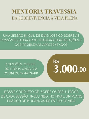 O propósito da mentoria é conduzir mulheres 40+ que vivem em modo automático, sobrecarregadas ou emocionalmente desconectadas, a uma jornada profunda de reconexão com sua essência.